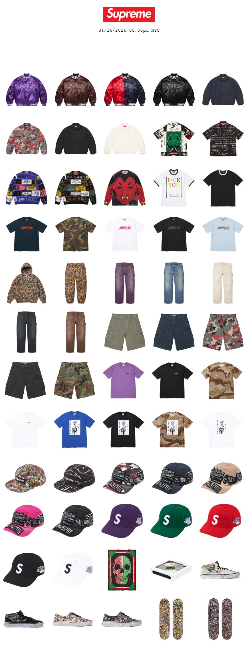 Supreme Online Store(シュプリーム・オンライン・ストア)で2026/4/18(土) Week8に発売予定の26SS 新作アイテムをまとめてみました。