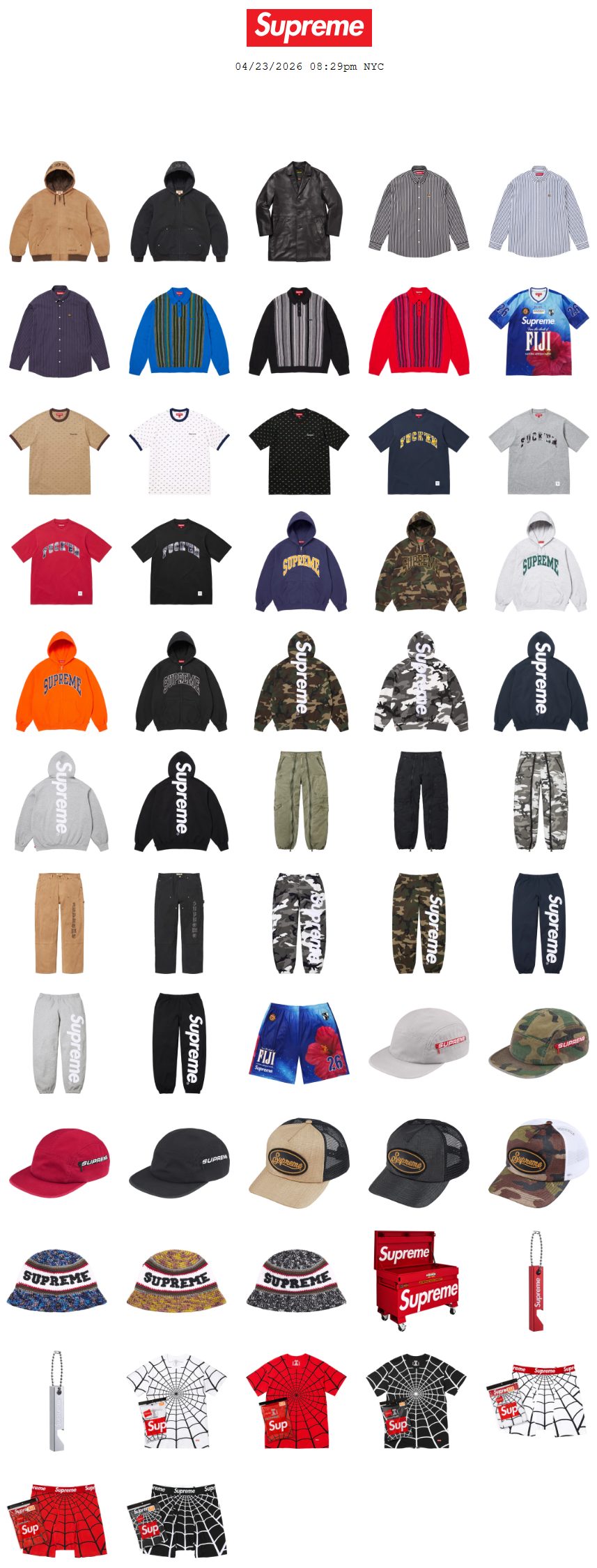 Supreme Online Store(シュプリーム・オンライン・ストア)で2026/4/25(土) Week9に発売予定の26SS 新作アイテムをまとめてみました。