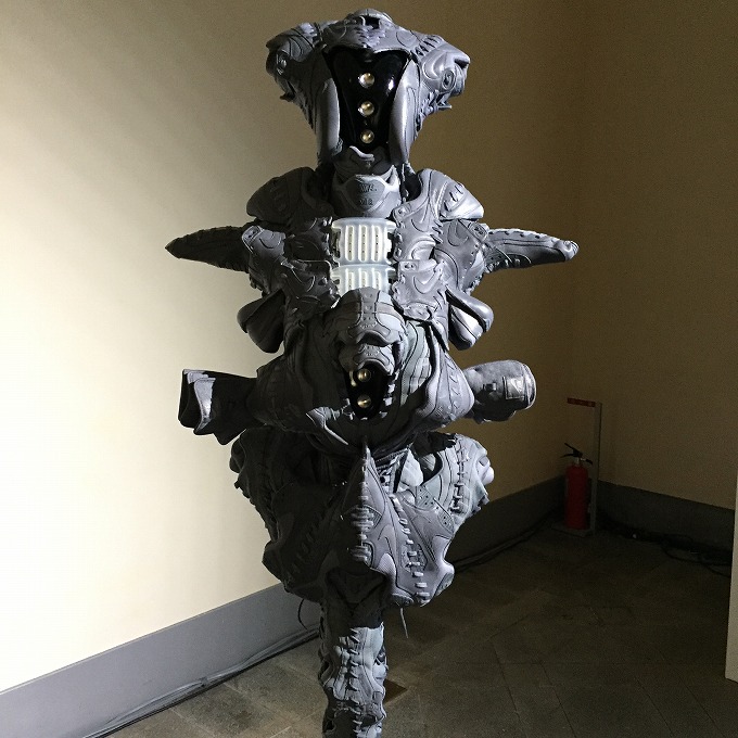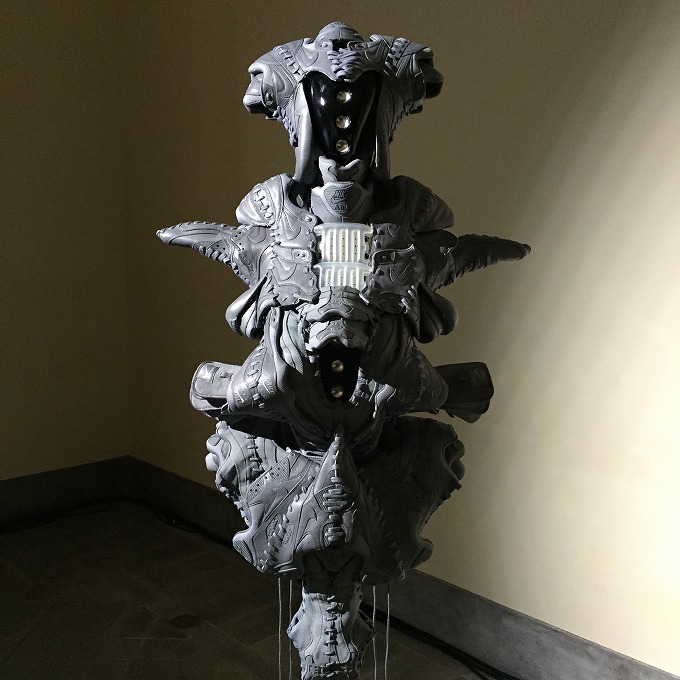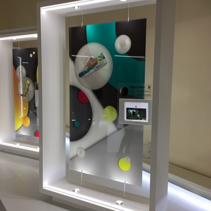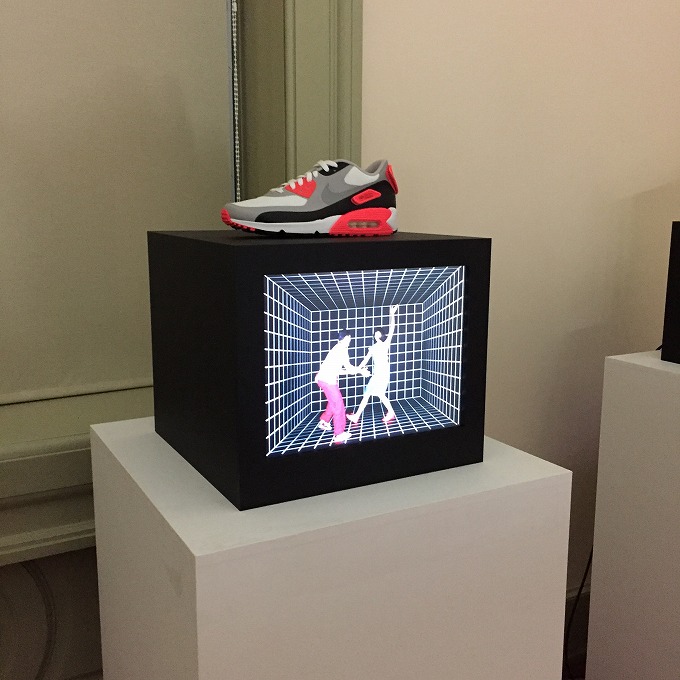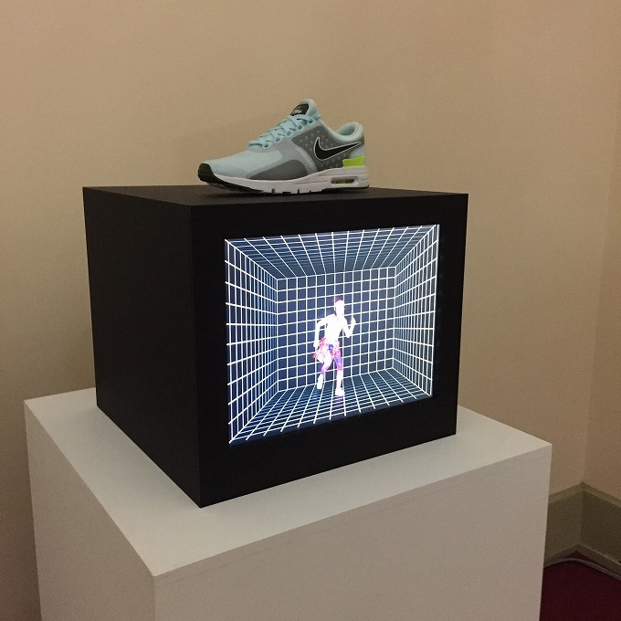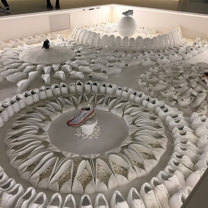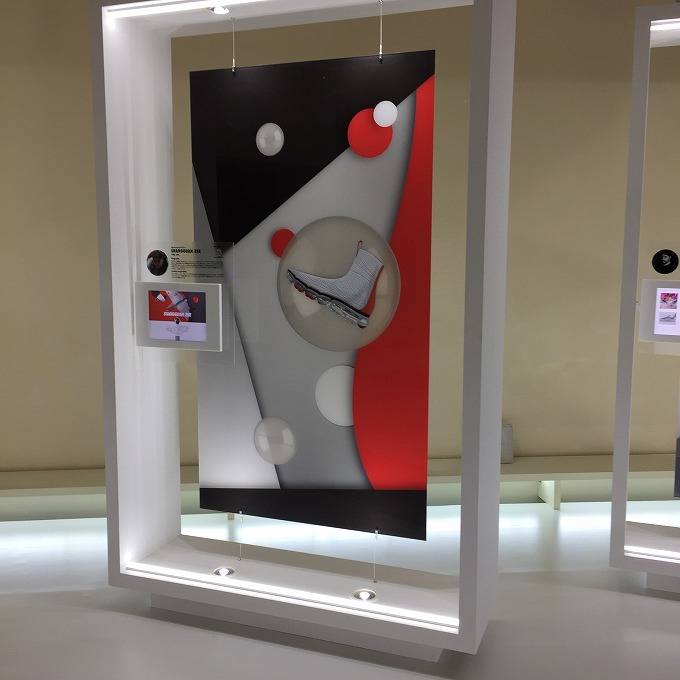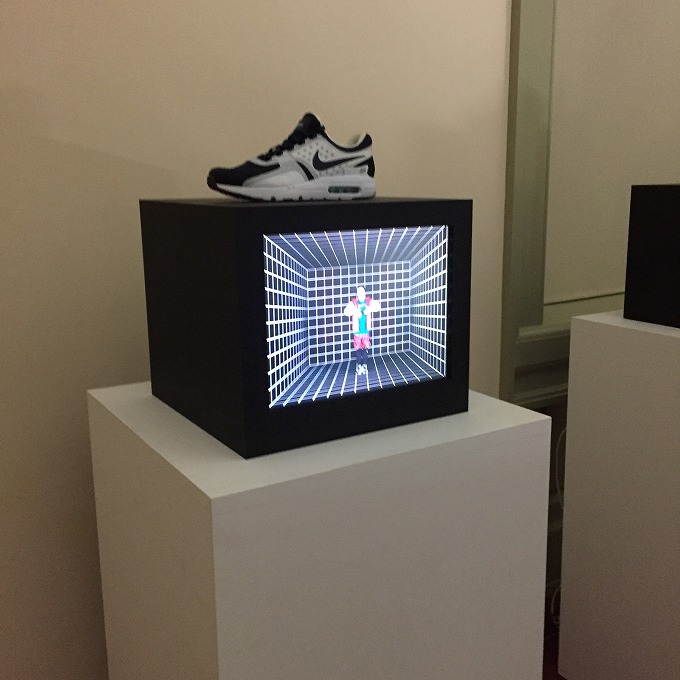 ・投影されたAIR MAX 97、スニーカーパーツで作成されたアートオブジェクトが展示されています。