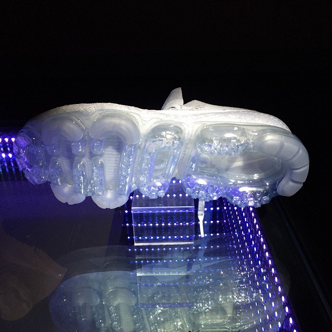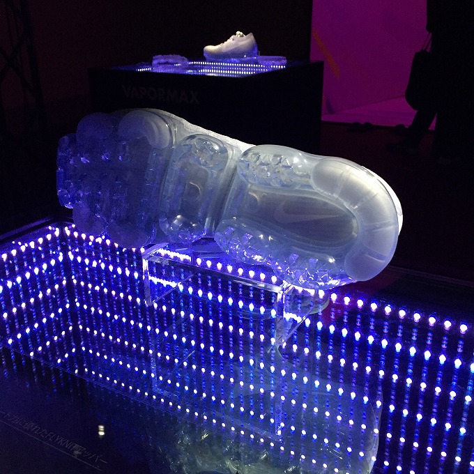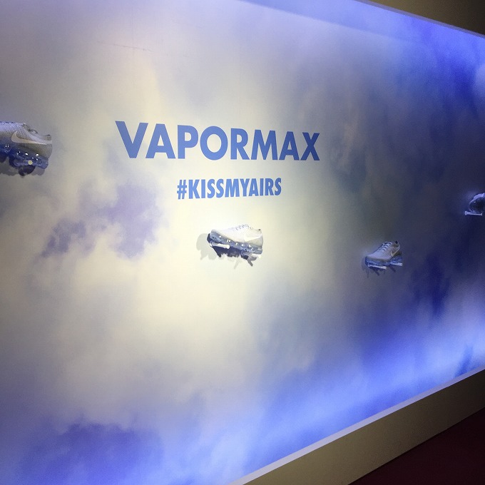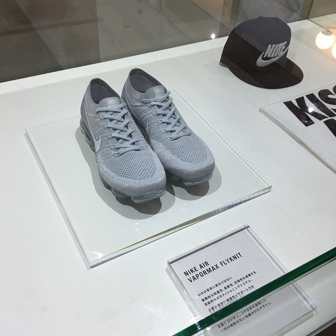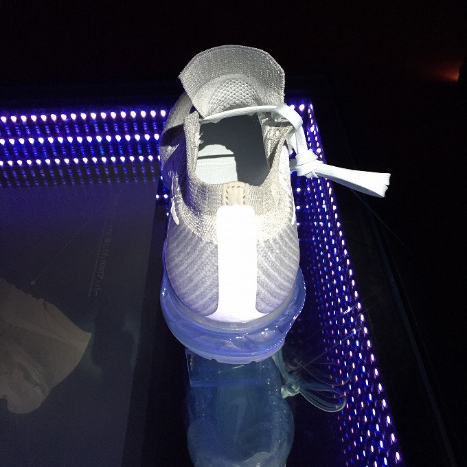 ・3/26(日)に発売予定のVAPOR MAXが展示されています。VAPOR MAXは、エアクッションパーツとソールが一体となっていて、今まで見たこと無い唯一無二のスニーカーとなっています。靴紐の素材が、今まで見たこと無いオリジナルの素材でした。