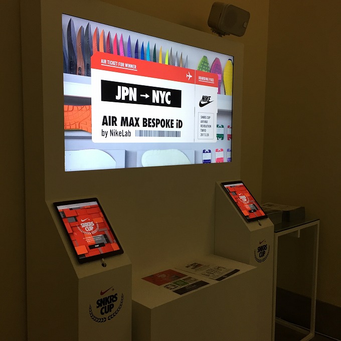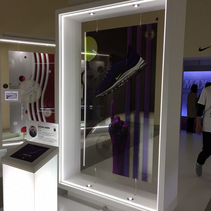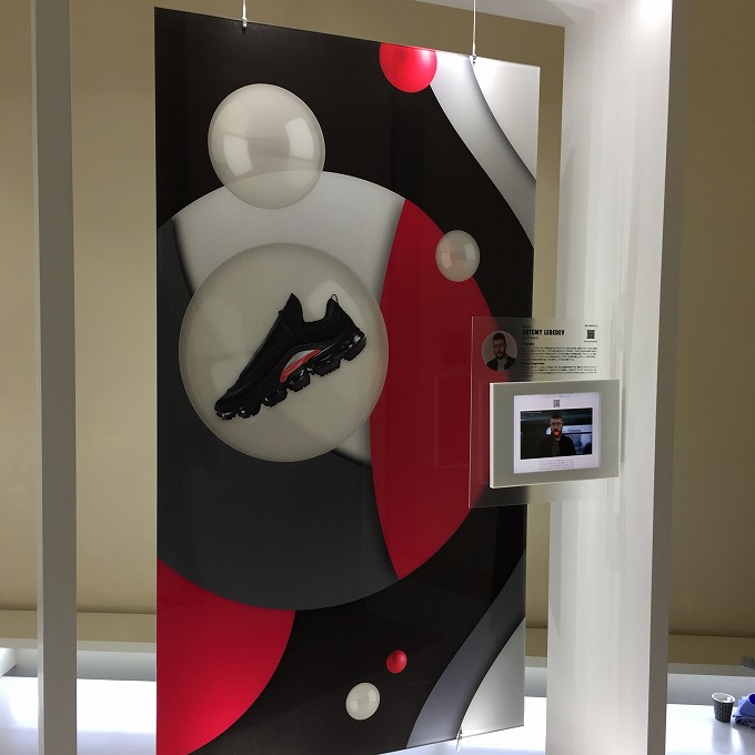 AIR MAX VOTE FORWARDの全12エントリーモデルのデザイン画と紹介ムービーが展示されています。その場で投票することが出来ます。日本からはMAGIC STICK(マジック・スティック)、REVISED(リバイズド)のデザイナー/ディレクターである今野直隆(こんのなおたか)氏がデザインしたモデルがノミネートされています。