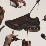 型押し加工が施されたバロック・ブラウンのオーバーレイとピーカンのアンダーレイで構成されたアッパー、ファーのスウッシュ、ヘンプのミッドソール、バロック・ブラウンのアウトソール、NIGOとナイキのコラボロゴが配置されたヒールタブなどのデザインが特徴的なローカットモデルです。Iのワッペンなどの装飾パーツが付属します。