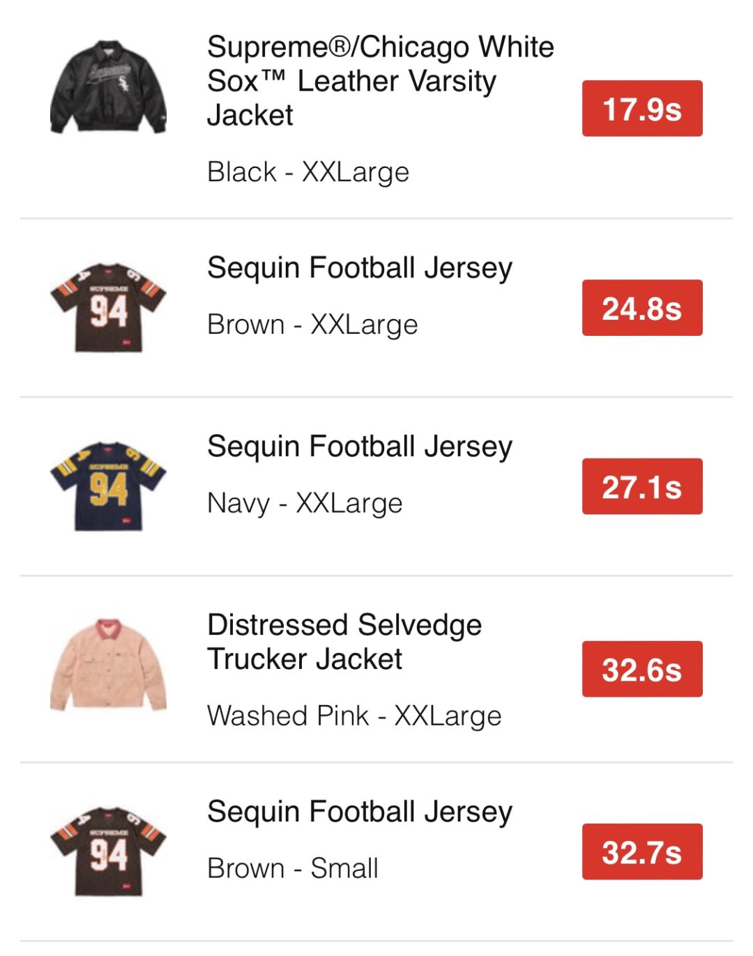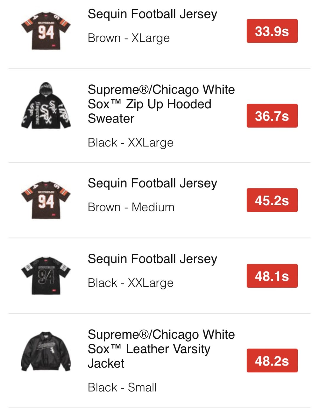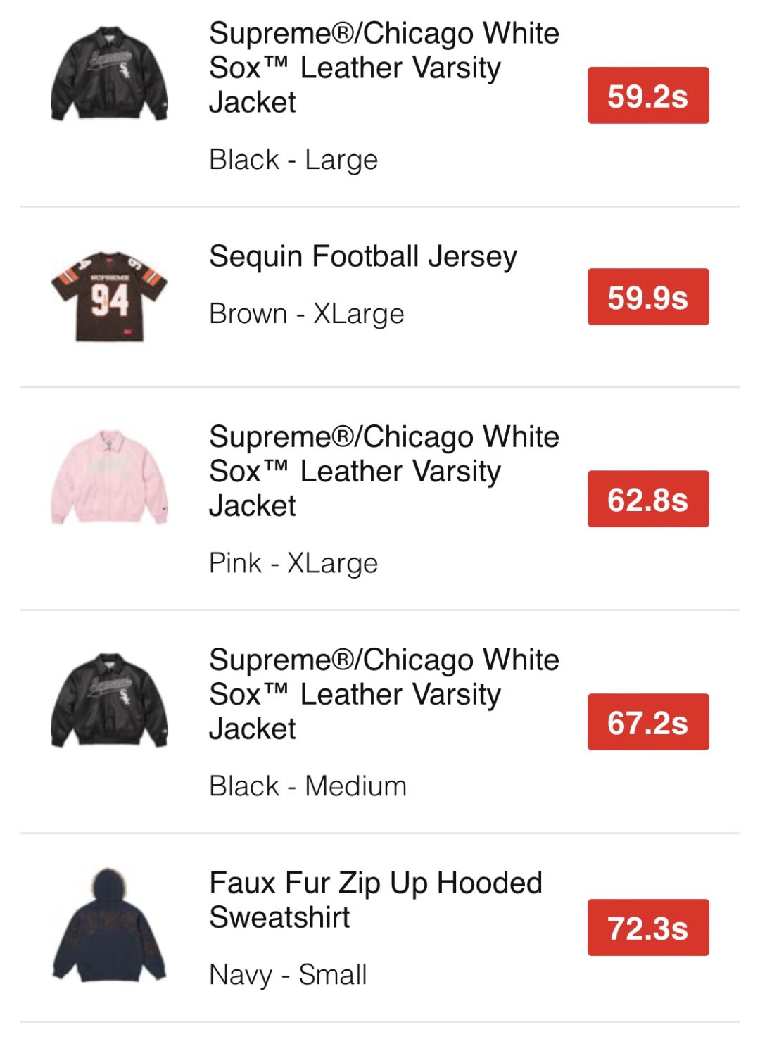 | Supreme®/Chicago White Sox™ Leather Varsity Jacket | S | M | L | XL | XXL |