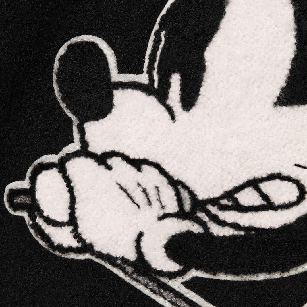コラボアイテムは、NUMBER (N)INEのアーカイブ ロックンローラー風のミッキーマウスのキャラクターが配置されたバーシティージャケット、ラグランロングスリーブTシャツ、メッシュバック5パネルキャップが発売予定です。