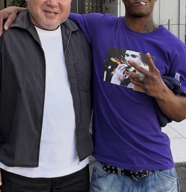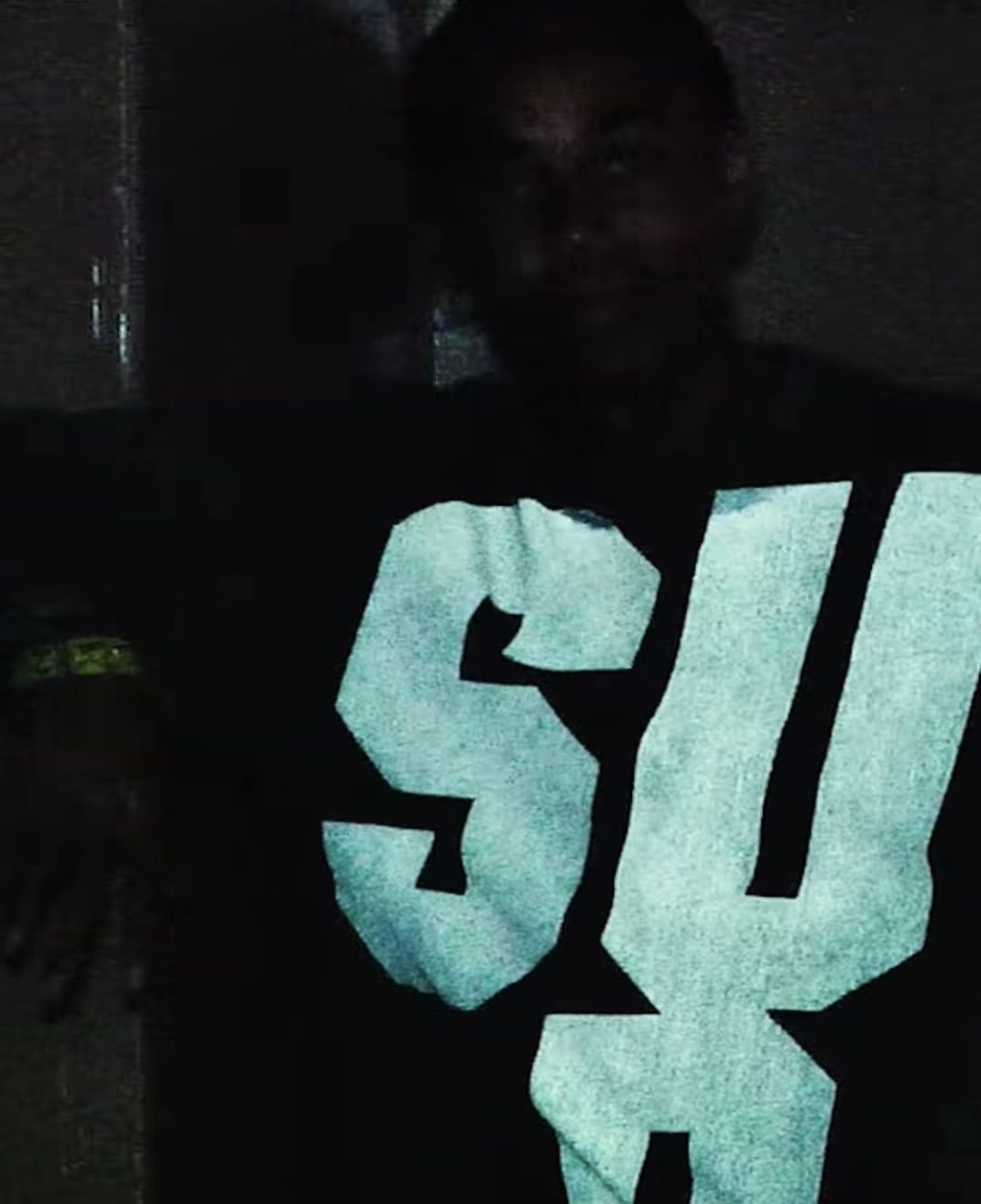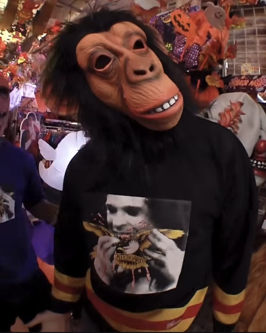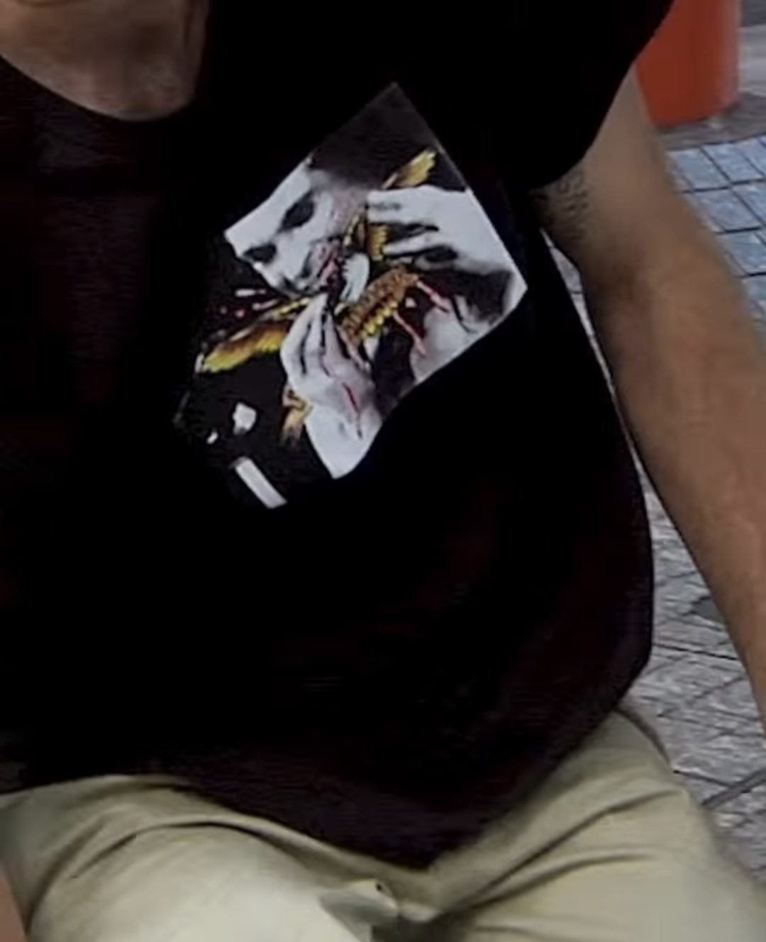 オジー・オズボーンが客席から投げられたコウモリの頭を食いちぎったワンシーンをパロった、オジー・オズボーンがANTIHEROのイーグルのロゴを食いちぎるグラフィックが正面、ANTI SUPREME HEROのコラボロゴが背中に配置されたTシャツ