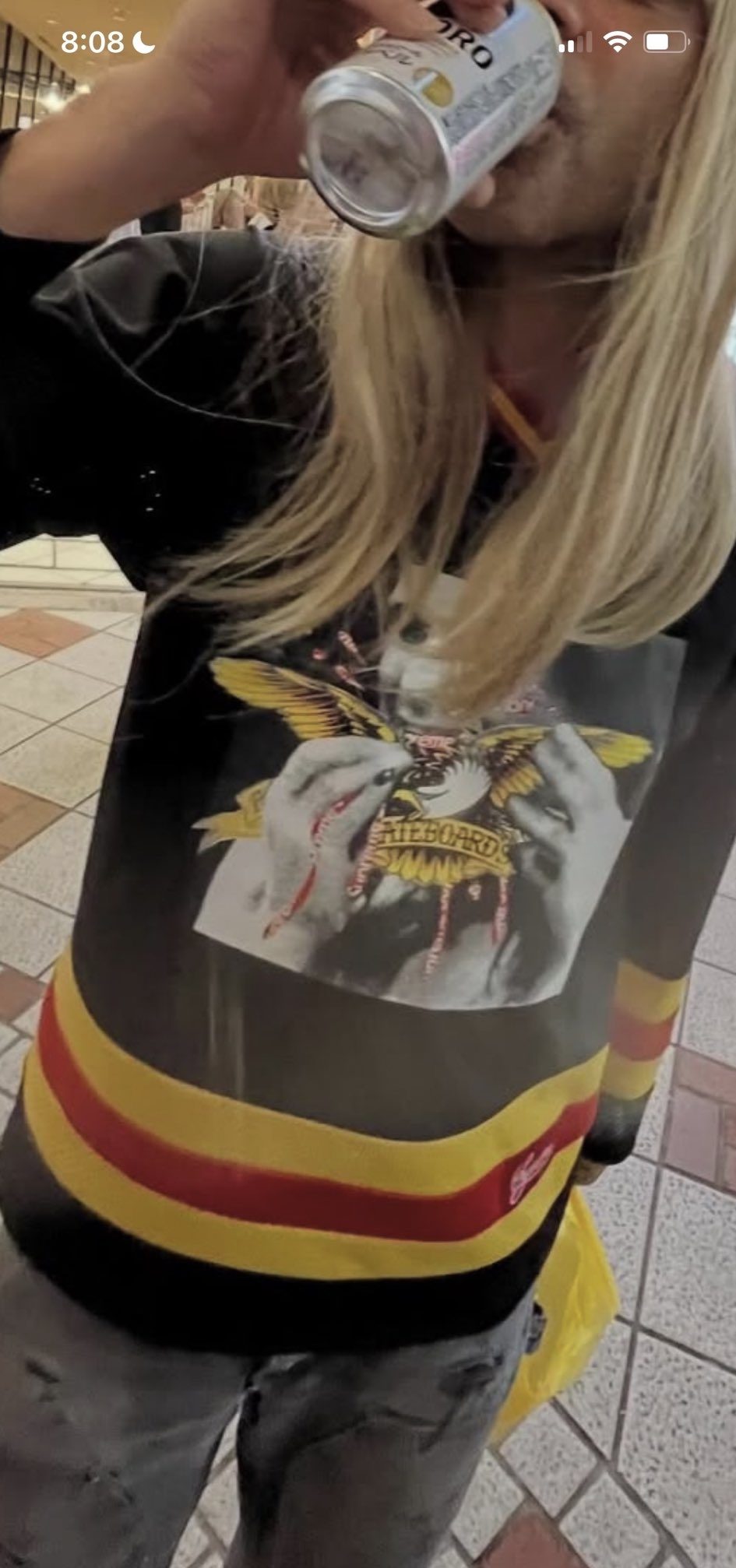 オジー・オズボーンが客席から投げられたコウモリの頭を食いちぎったワンシーンをパロった、オジー・オズボーンがANTIHEROのイーグルのロゴを食いちぎるグラフィックが正面、ANTIHERO SUPREME 18のテキストが背中に配置されたホッケージャージ