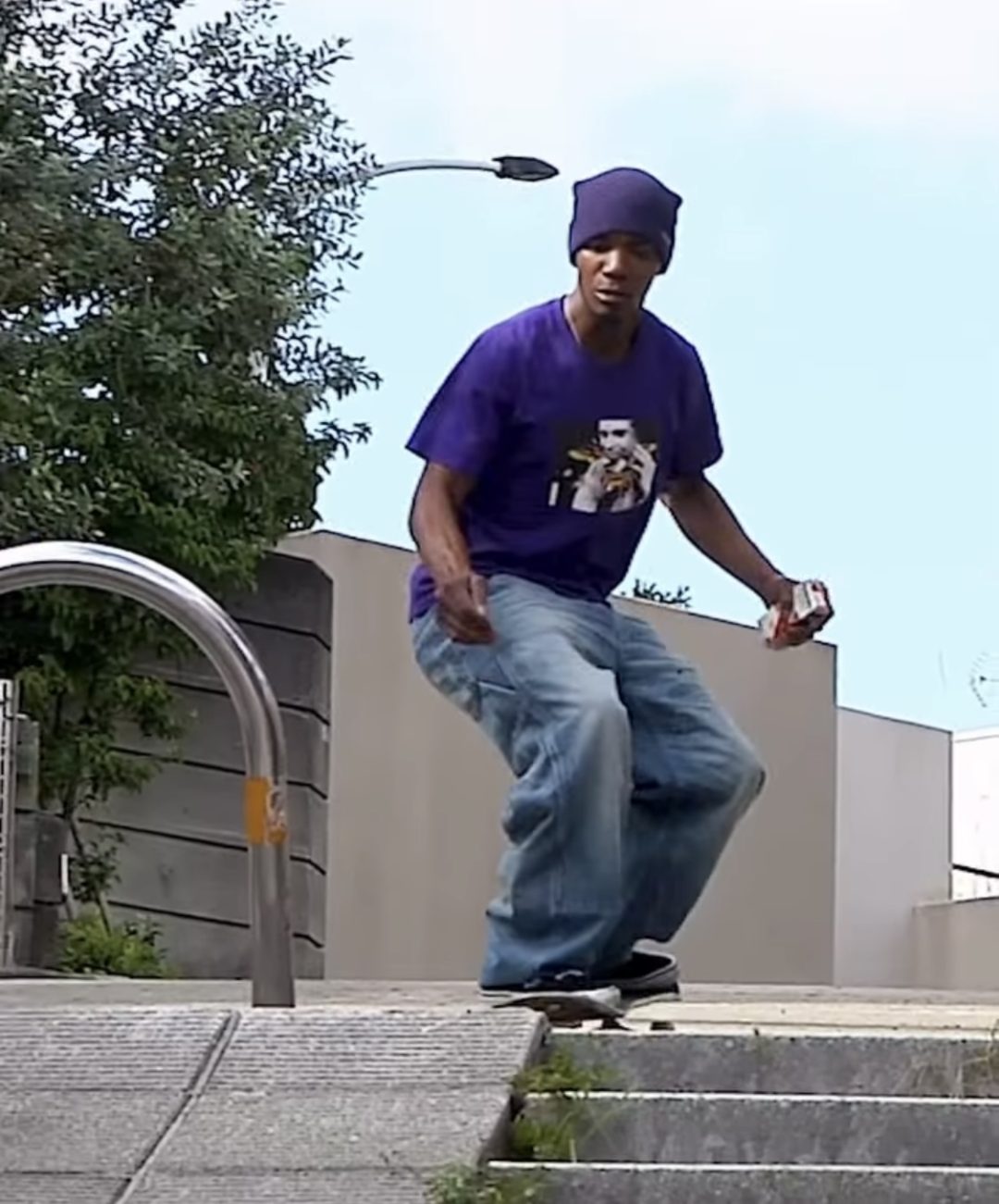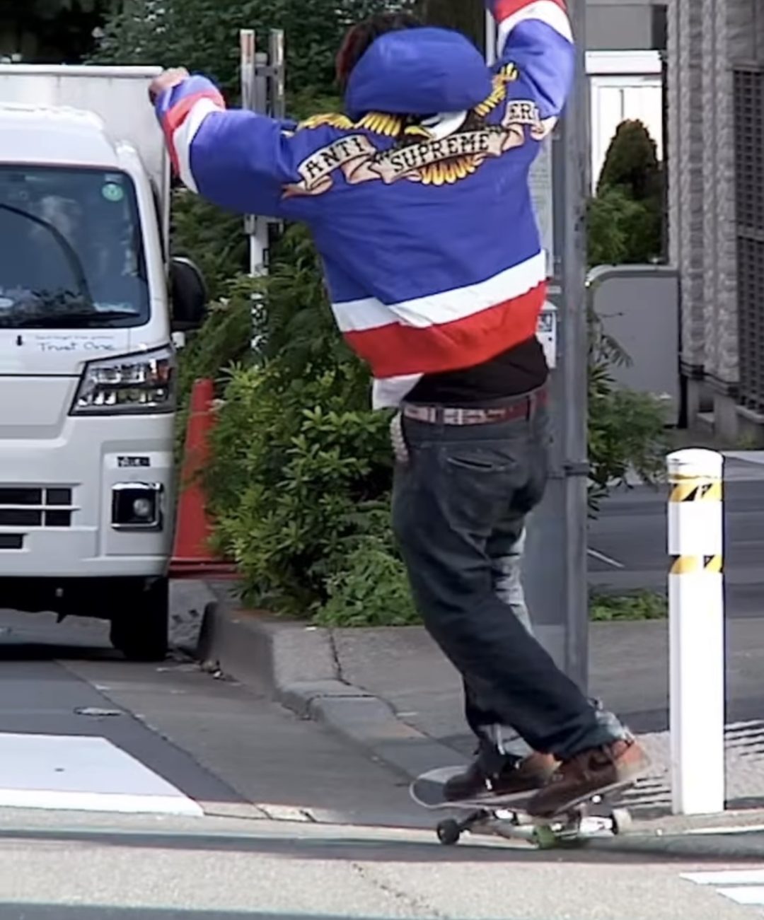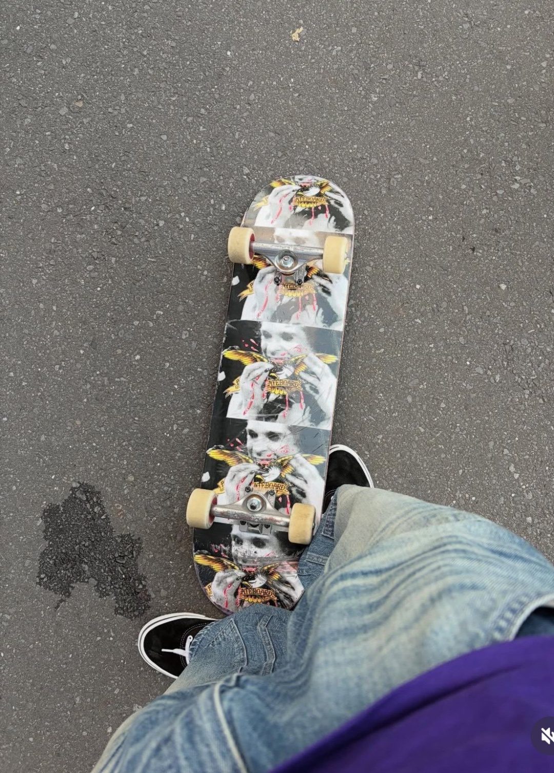 ANTI SUPREME HEROのコラボロゴとオジー・オズボーンが客席から投げられたコウモリの頭を食いちぎったワンシーンをパロった、オジー・オズボーンがANTIHEROのイーグルのロゴを食いちぎるグラフィックが配置されたスケートボード