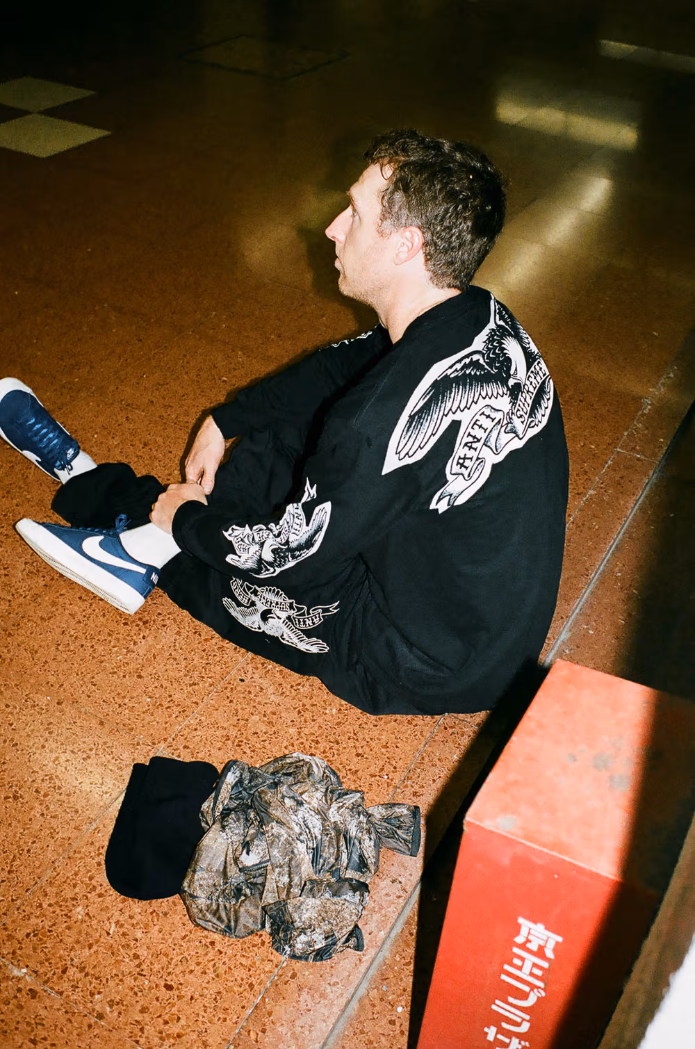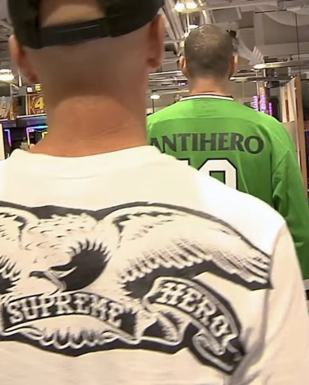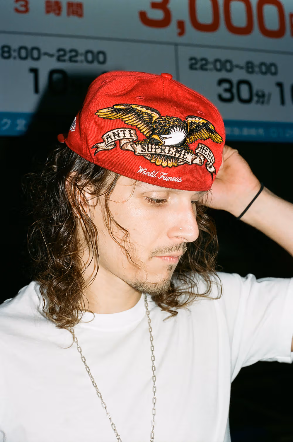 ANTIHEROのコラボアイテムは、ANTI SUPREME HEROのコラボロゴが配置された中綿入りのスタジアムジャケット、総柄のフリースジャケット、セーター、ロングスリーブTシャツ、ワークパンツ、NEW ERA製の59FIFTYキャップ、オジー・オズボーンが客席から投げられたコウモリの頭を食いちぎったワンシーンをパロった、オジー・オズボーンがANTIHEROのイーグルのロゴを食いちぎるグラフィックが配置されたホッケージャージ、Tシャツ、スケートボードデッキ、15SSで発売されたSupreme illegal business controls America TeeのアートワークにANTIHEROのイーグルをコラージュしたグラフィックが配置されたフーディーが発売予定です。