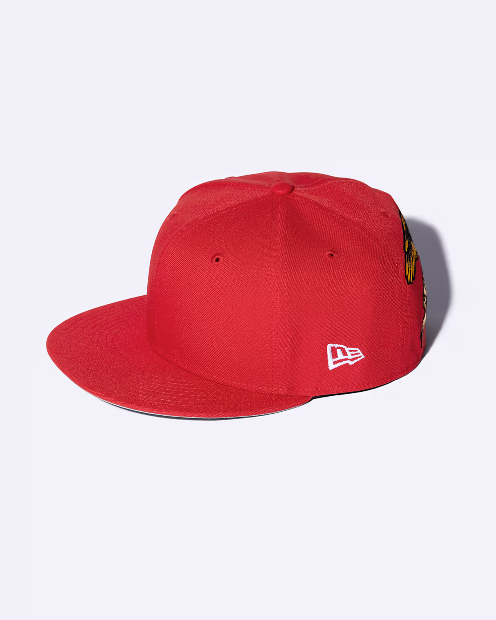 ANTI SUPREME HEROのコラボロゴ、World Famousのテキストが背面に配置されたNEW ERA製の59FIFTYキャップ