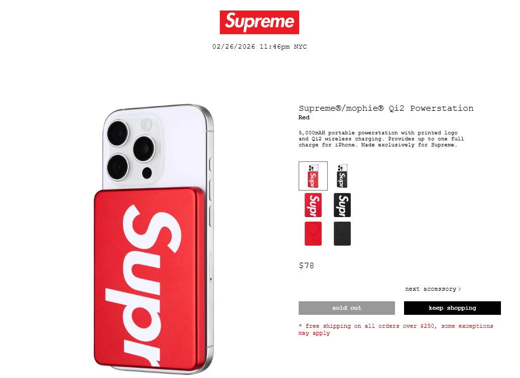 - Supreme®/mophie® Qi2 Powerstation 15,400円 €88 $78