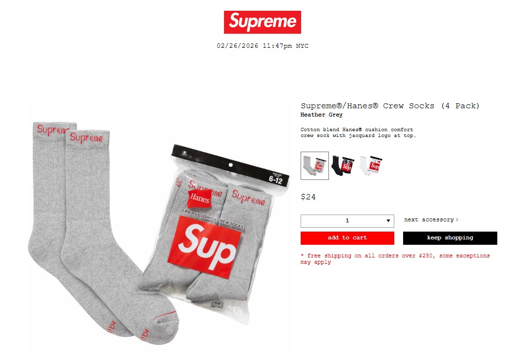 - Supreme®/Hanes® Crew Socks (4 Pack) €26 $24