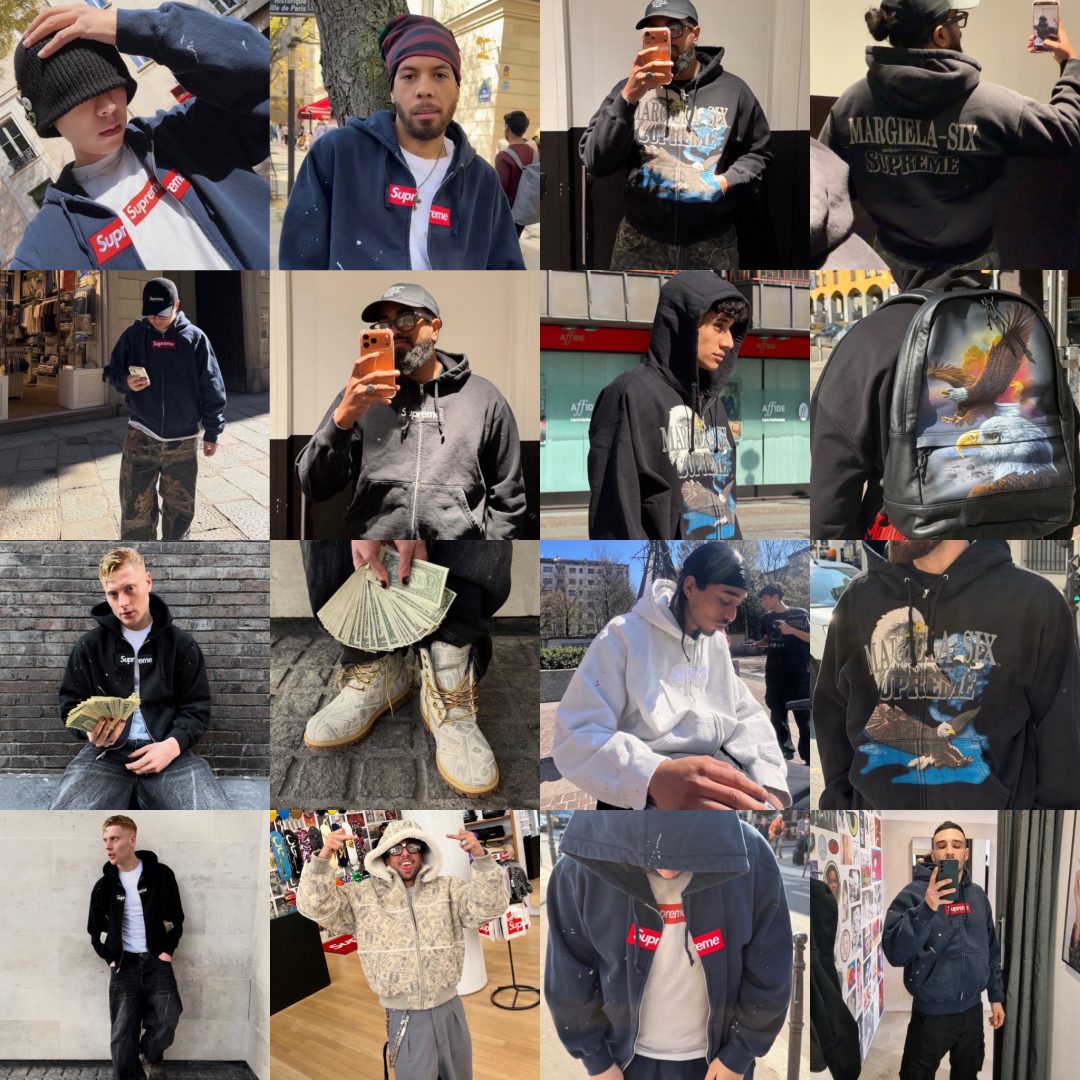 Supreme公式Instagramで、MARGIELA-SIX paris-new york-milwaukee SUPREMEのテキストが背中に配置されたブラックのフーディーを着用したティーザーが公開されています。