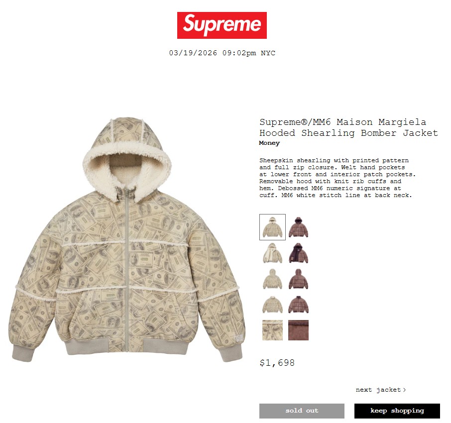 ・Supreme®/MM6 Maison Margiela Hooded Shearling Bomber Jacket 319,000円 €1698 $1698