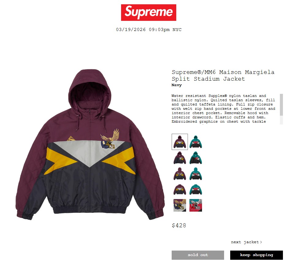 • Supreme®/MM6 Maison Margiela Split Stadium Jacket 79,200円 €438 $428