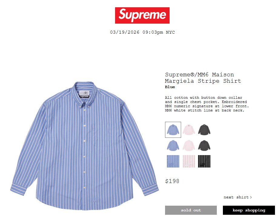・Supreme®/MM6 Maison Margiela Stripe Shirt 38,500円 €198 $198