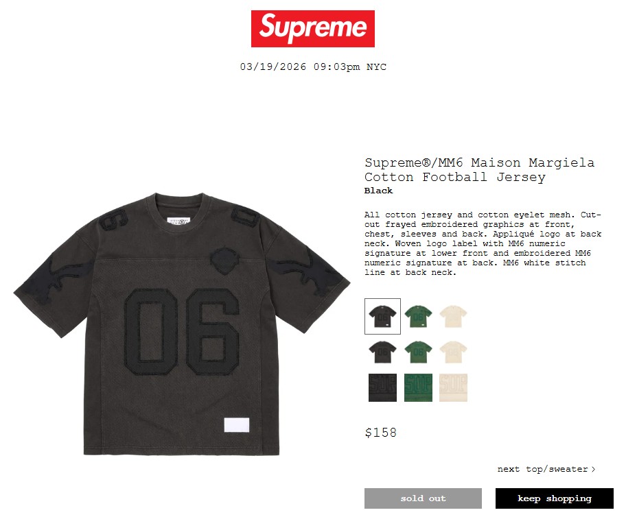 Supreme 公式通販サイトで3月21日 Week4に発売予定の26SS 新作アイテム【MM6 MAISON MARGIELA】