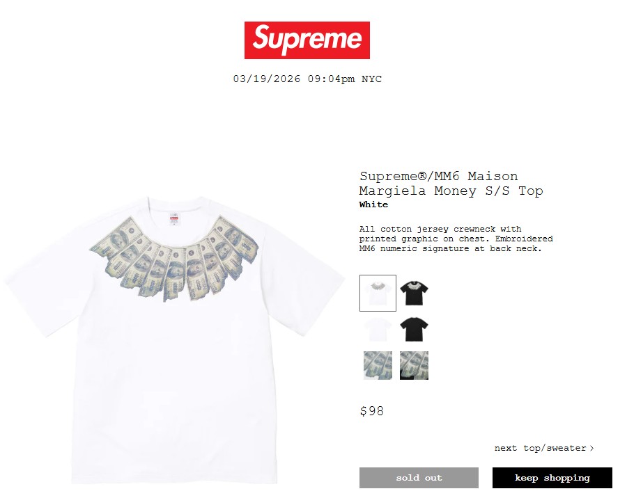 Supreme®/MM6 Maison Margiela Money S/S Top S M L XL XXL