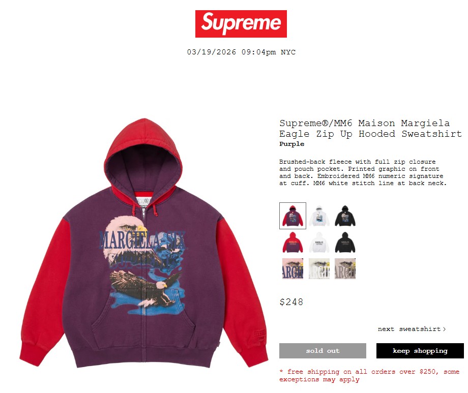• Supreme®/MM6 Maison Margiela Eagle Zip Up Hooded Sweatshirt 46,200円 €258 $248