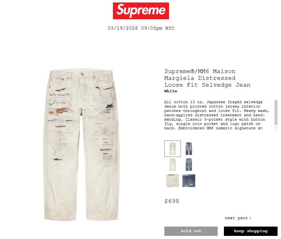 • Supreme®/MM6 Maison Margiela Distressed Loose Fit Selvedge Jean 132,000円 €698 $698