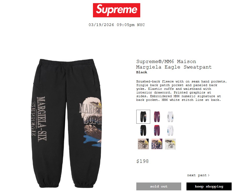 • Supreme®/MM6 Maison Margiela Eagle Sweatpant 37,400円 €208 $198