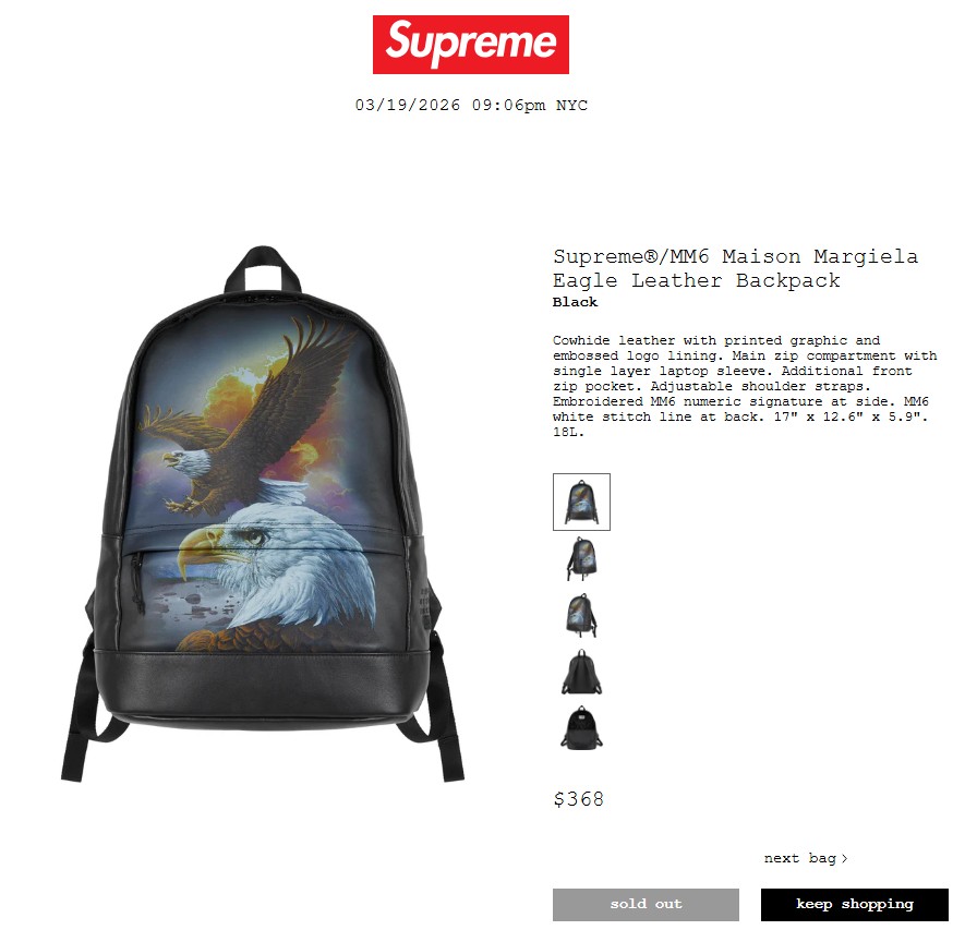 • Supreme®/MM6 Maison Margiela Eagle Leather Backpack 66,000円 €368 $368