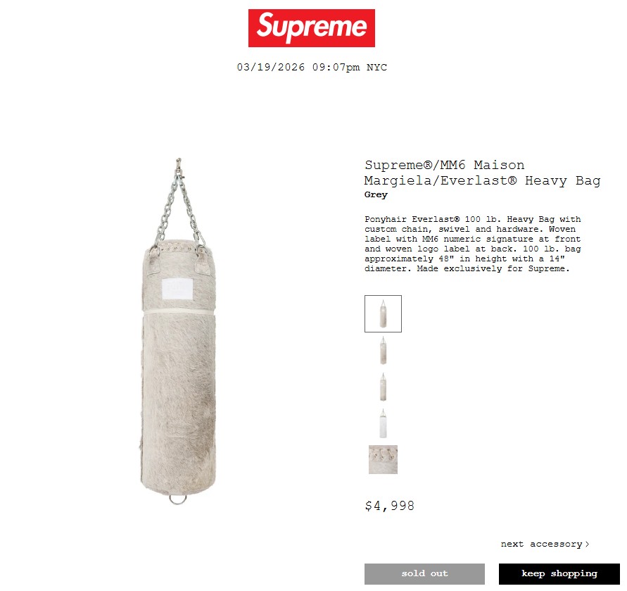 • Supreme®/MM6 Maison Margiela Everlast® Heavy Bag 957,000円 €4998 $4998