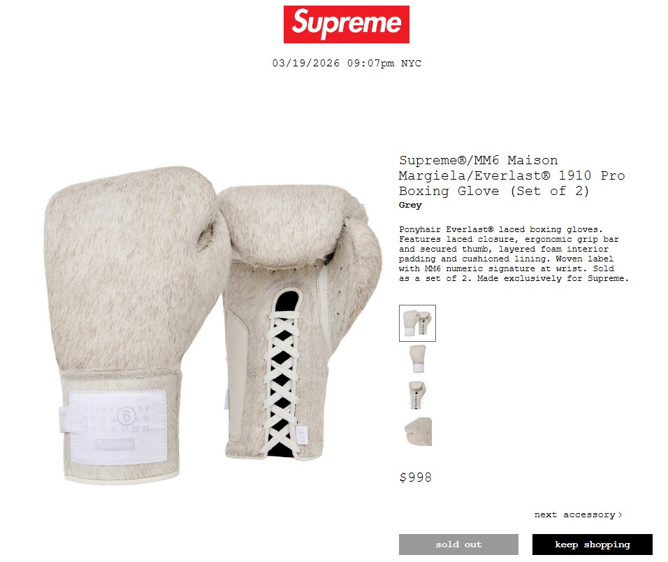 • Supreme®/MM6 Maison Margiela Everlast® 1910 Pro Boxing Glove (Set of 2) 198,000円 €998 $998