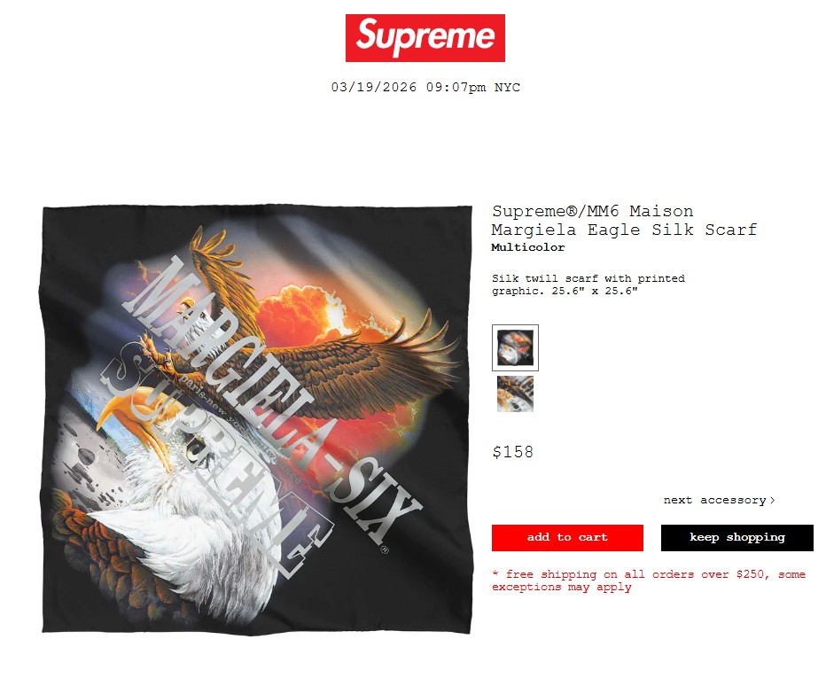 • Supreme®/MM6 Maison Margiela Eagle Silk Scarf 29,700円 €158 $158