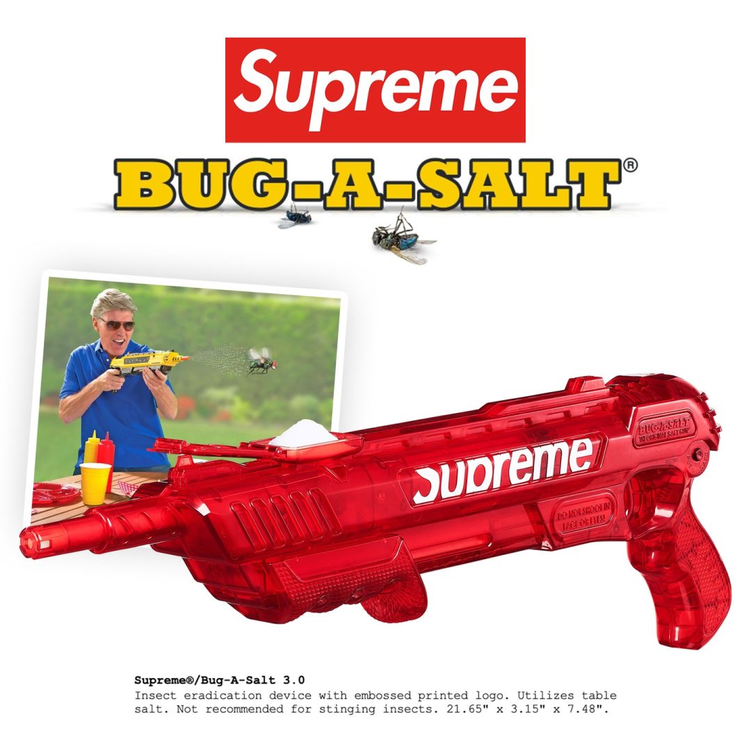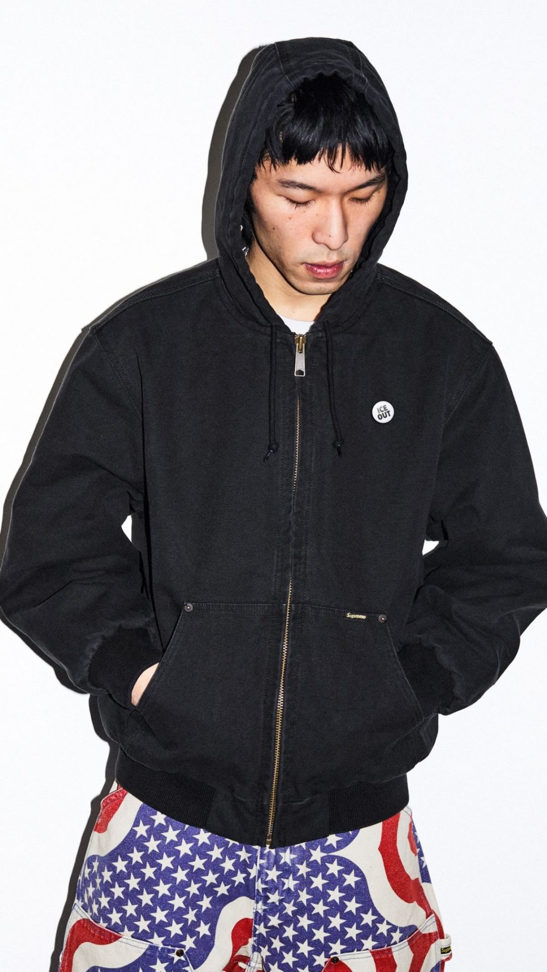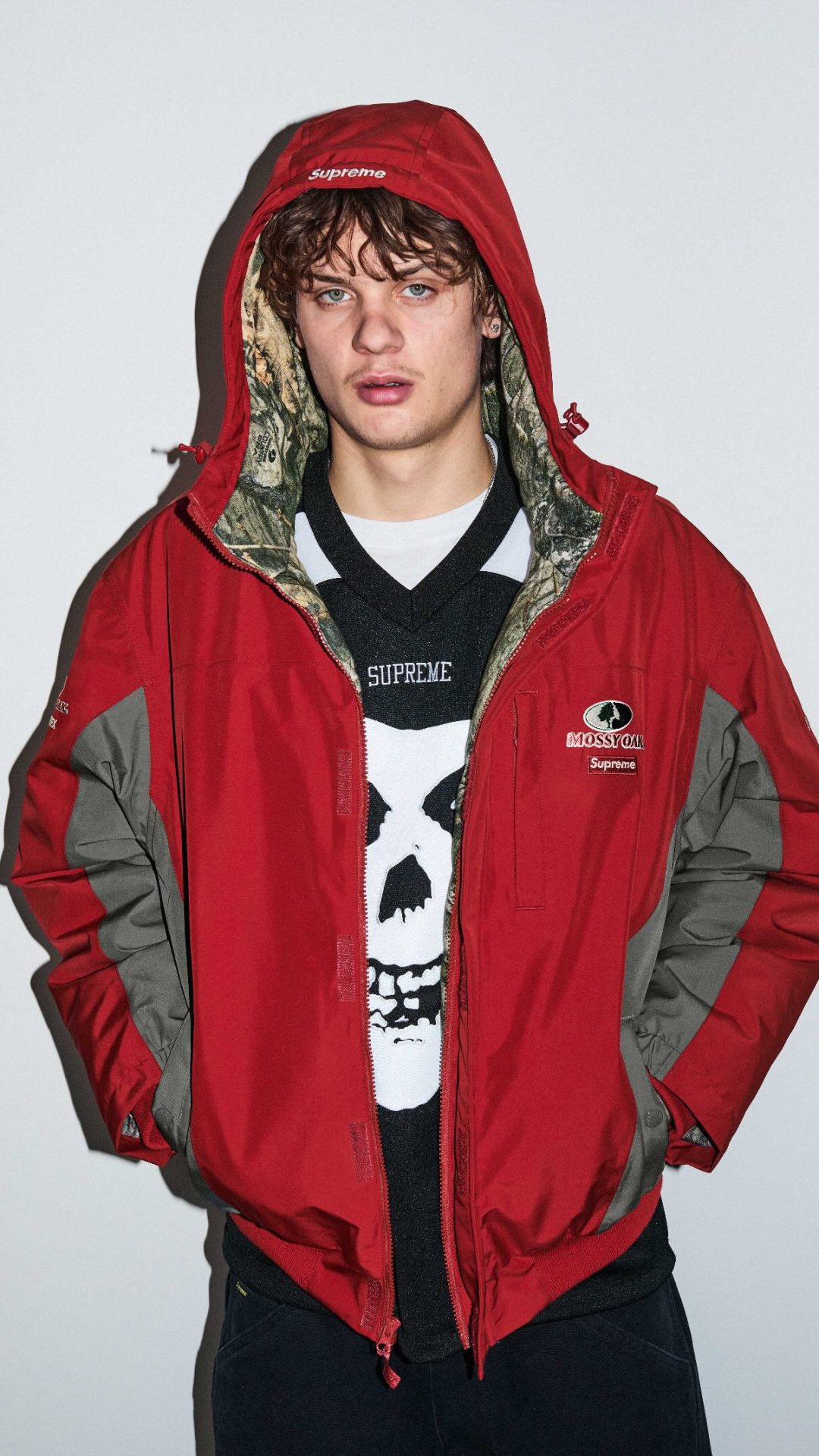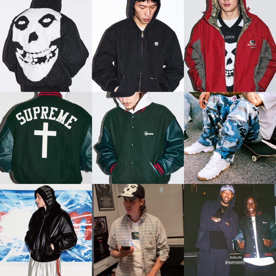 レギュラーアイテムは、THE MISFITS クリムゾン・ゴーストの大きなロゴが背中に配置された3Mシンサレート断熱材を内蔵したコットンキャンバス素材のフード付きジップアップジャケット、スクリプトロゴが左胸、アーチロゴとクロスマークが背中に配置された袖がカウハイドレザーになったウールブレンド素材のバーシティジャケット、クラシックロゴが左胸ポケットに配置されたルーズシルエットシルエットの半袖のボタンダウンシャツ、THE MISFITSの2枚目のスタジオ・アルバム EARTH A.D. / WOLFS BLOODのアルバムジャケットのグラフィックが全面に配置された総柄のアクリルブレンドのフード付きジップアップセーター、THE MISFITSのクリムゾン・ゴーストのグラフィックが正面、9のナンバーが背中に配置されたホッケーシャツ、THE MISFITSのPUSHEADのグラフィックが全面に配置された総柄のTシャツ、巨人、ヤクルト、ベイスターズのチームカラーをサンプリングしたSupreme 東京が正面、スター・最高が両肩、94のナンバーが背中に配置されたポリエステルサンドニット生地のベースボールシャツ、オールドイングリッシュロゴのメタルスタッズがフードに打ち込まれたオーバーダイド加工が施されたフーディー、膝下のジップパーツを開けるとハーフパンツになる2ウェイ仕様のユーティリティパンツ、ジップパーツが両側面に配置されたサプレックス・リップストップナイロン素材のウォームアップパンツ、THE MISFITSのクリムゾン・ゴーストのグラフィックが配置されたメッシュバック6パネルキャップ、オーバーダイド加工が施されたキャンプキャップ、ベイスターズ、巨人、阪神、ヤクルトのチームカラーをサンプリングしたSupreme、最高、スターが配置されたNEW ERA製のビーニー、食塩を使用した拳銃型の害虫駆除器、軽量でコンパクトな2200ワット120Vインバーター発電機 などが発売予定です。
